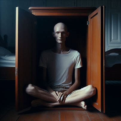 One night, unable to take it anymore, he walked to the cupboard. His hands shook as he touched the handles. He stood there for a long time, frozen, before pulling the doors open.