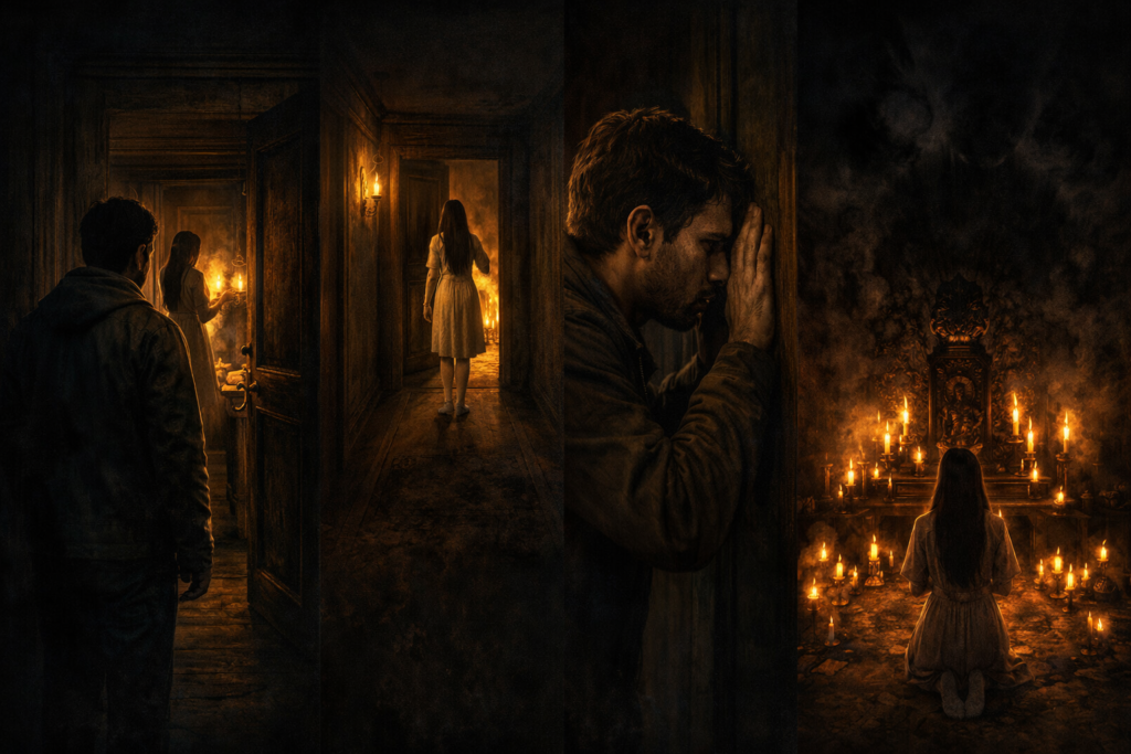 One night, when he could not control his curiosity, Arjun followed her. She unlocked the forbidden room and went inside. He pressed his ear to the door. Inside, he heard chanting, like old prayers. He imagined candles burning, shadows dancing, and something dark living there