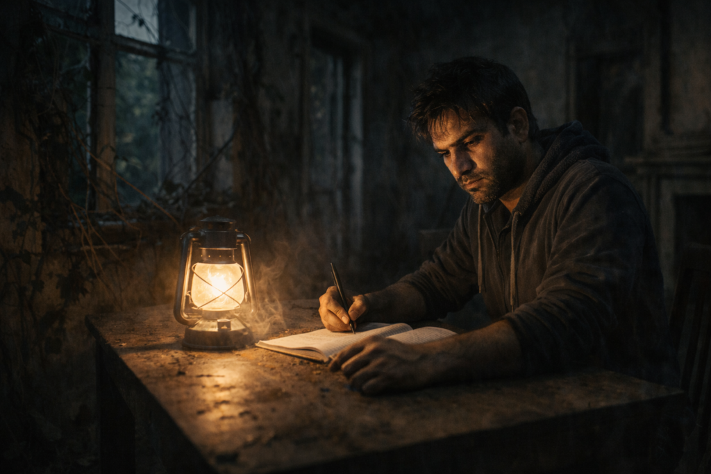 Arjun carried a battery lamp and a notebook, sat at a cracked table, and began to write.